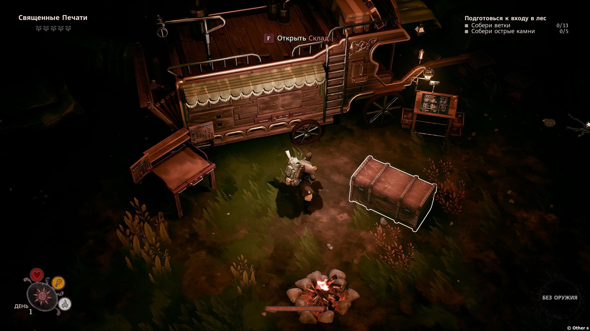 Караван — ваш дом и единственная защита от наступающей тьмы. Это жизненно важное убежище, где можно укрыться и подготовиться к тому, что ждет впереди. Улучшайте ремесленные станции, чтобы открывать более мощное снаряжение и необходимые предметы. Чем дальше в лес, тем суровее испытания, и для выживания вам понадобится лучшее снаряжение. - — Риск, награда и ремесло: