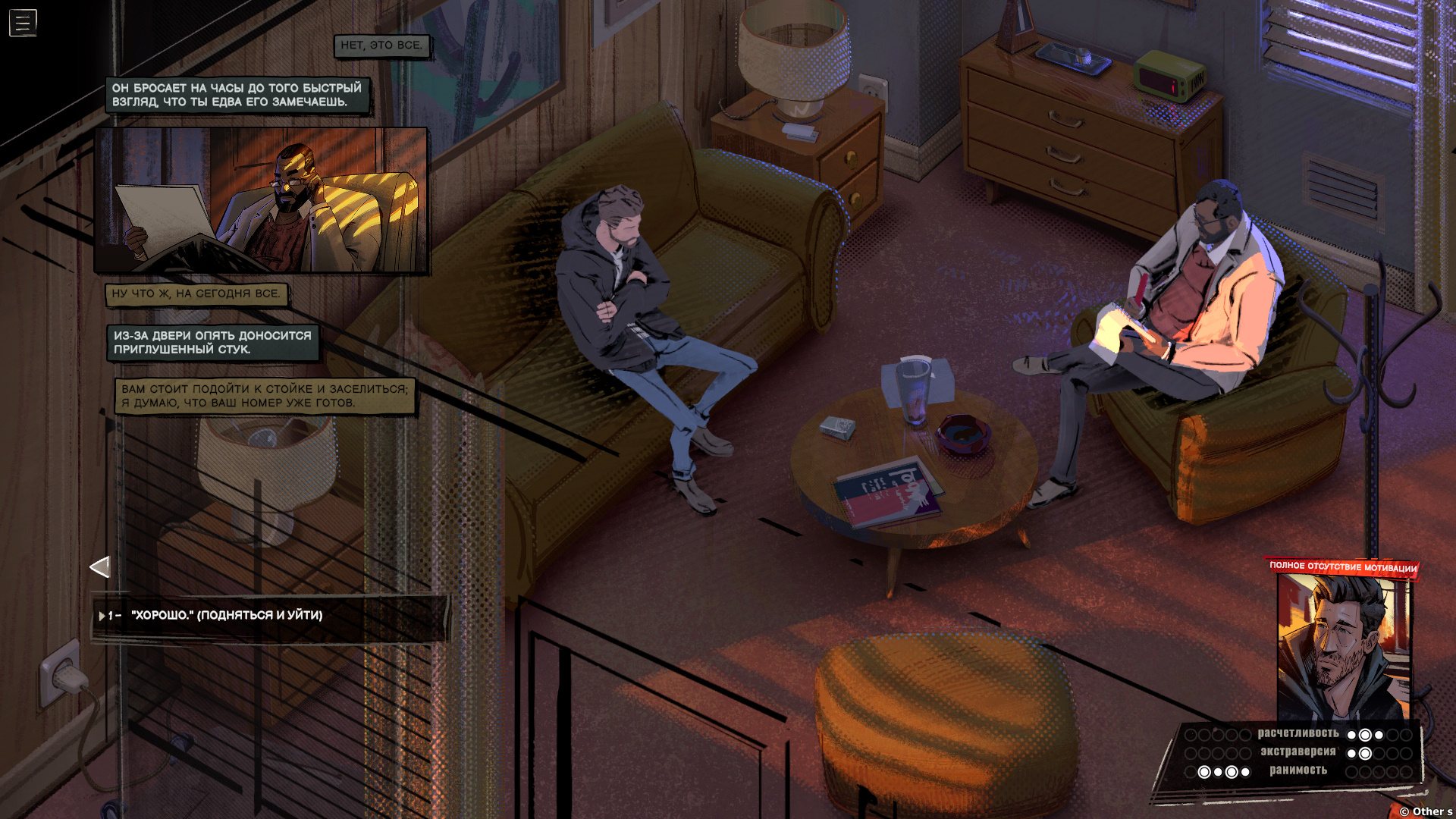 - — Накапливайте воспоминания, открывайте новые намерения, меняйте образ мыслей и создавайте свою неповторимую историю. Выйдите за рамки привычного мышления, чтобы открыть неожиданные и забавные реплики, и узнайте, как эффекты состояний влияют на личность героя. Например, алкоголь может сделать его более общительным, а тревога — ранимым.